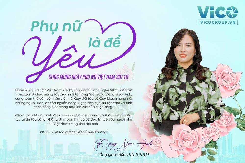 Nhân dịp ngày Phụ nữ Việt Nam 20/10, Tập Đoàn Công Nghệ VICO xin gửi đến Quý khách hàng, Quý đối tác và toàn thể cán bộ nhân viên nữ lời chúc tốt đẹp nhất.