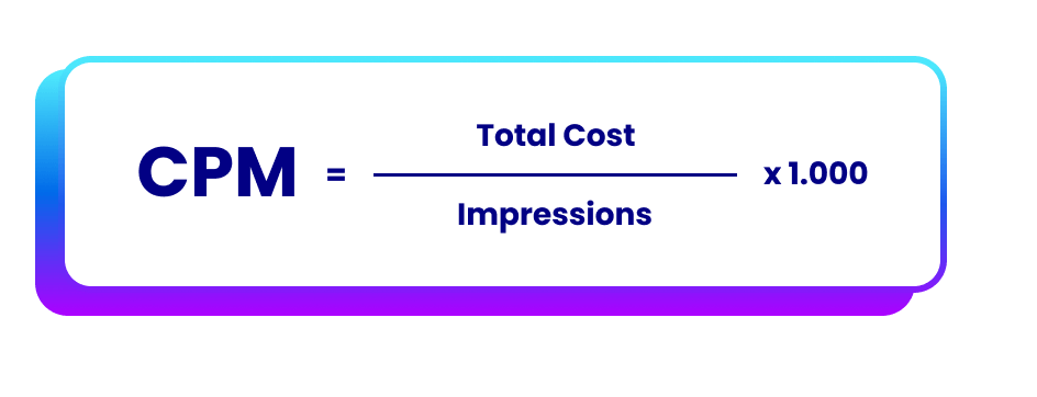 Về nguyên tắc, chi phí CPM được tính bằng cách lấy tổng chi phí quảng cáo chia cho số lượt hiển thị, sau đó nhân với 1.000. Công thức cụ thể như sau: